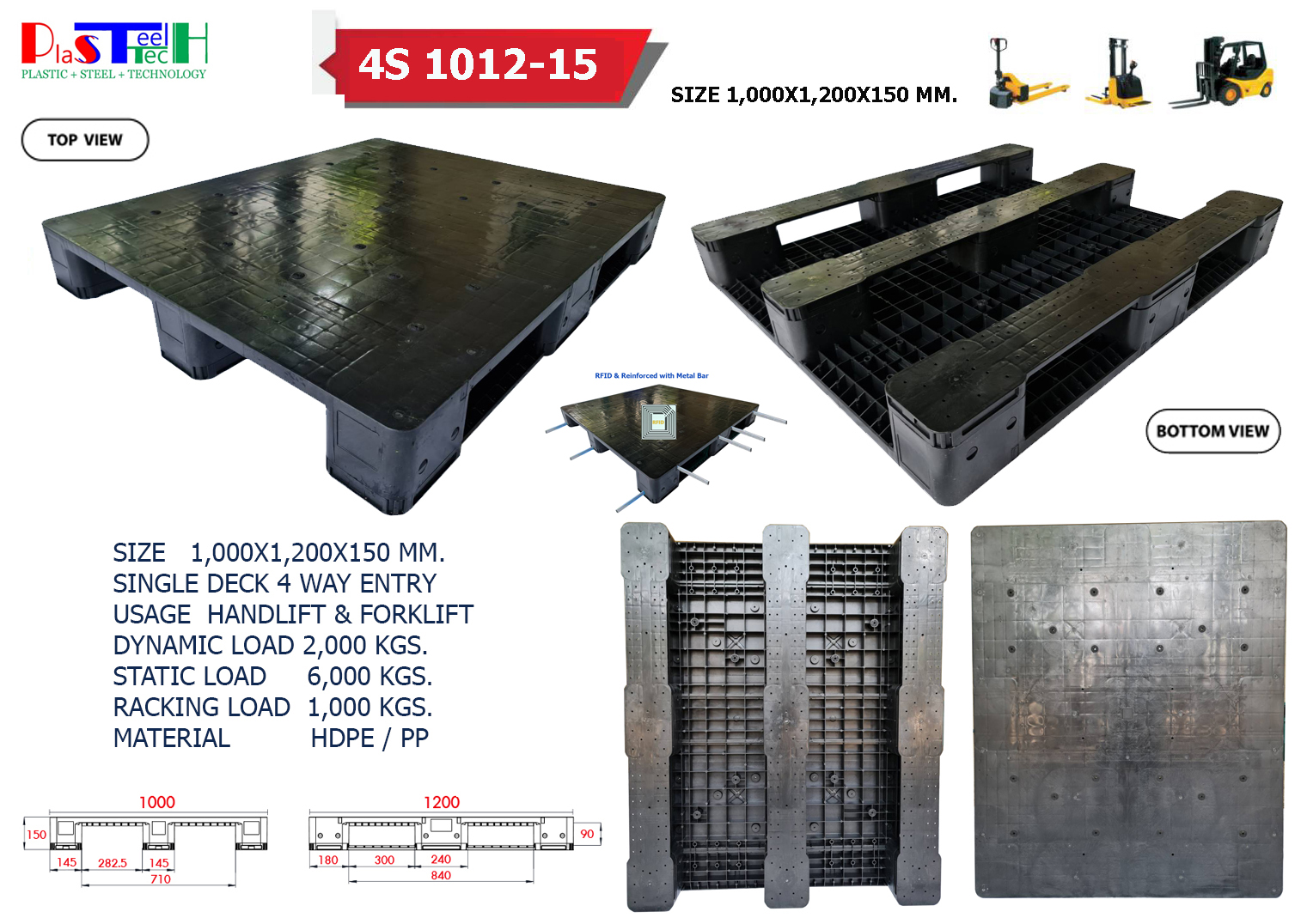 1,000x1,200x150 mm พาเลทพลาสติกเสริมเหล็ก