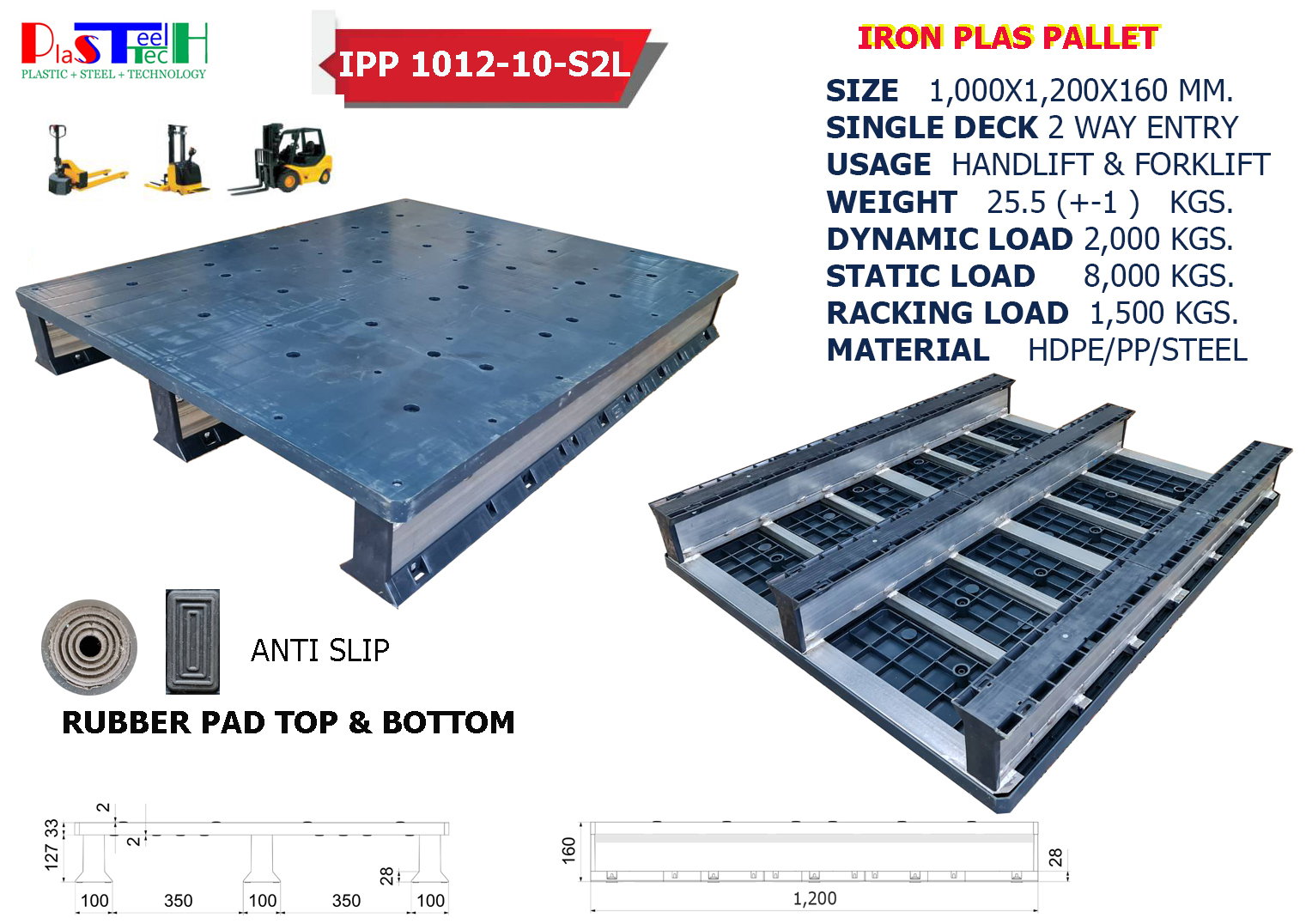 1,000x1,200x160 mm พาเลทเหล็ก