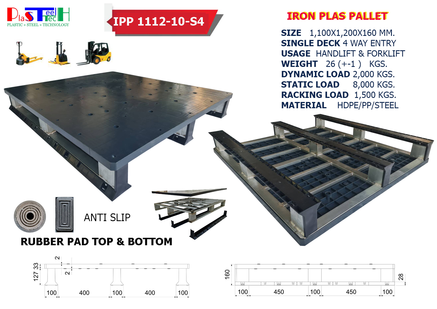 1,100x1,200x160 mm พาเลทเหล็ก
